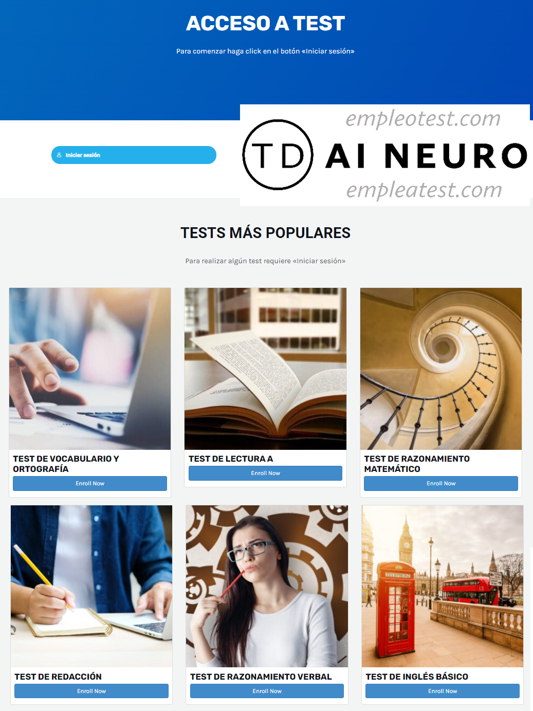 AI NEURO TEST DIVISION, es una plataforma para la aplicación de Pruebas Psicométricas, Evaluaciones Técnicas y de Conocimientos, Encuestas de Clima Laboral, entre muchos otros Tests en Línea. Puede ser consultada en empleotest.com y empleatest.com