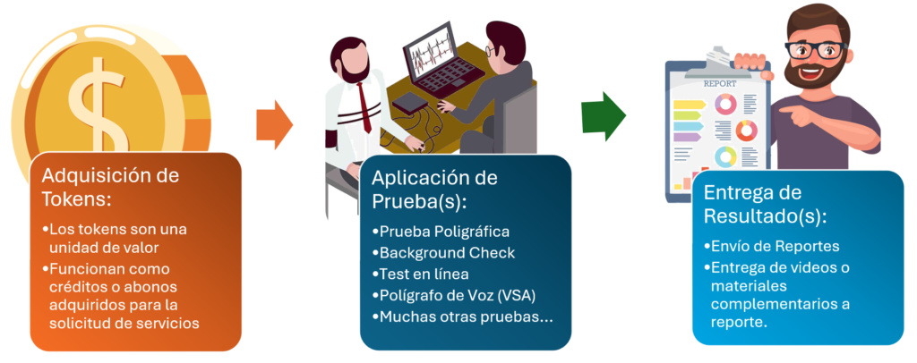 Implica un proceso de adquisición de pruebas y paquetes, diseñado específicamente para atender las necesidades de las empresas que requieren pruebas de control de confianza por volumen, para fortalecer sus procesos de selección (mediante la Prueba Poligráfica, el Background Check, Detección de Engaño por Análisis de Voz, Pruebas Psicométricas y de Conocimientos), así como eventualmente, que requieren pruebas para la resolución de incidentes (por ejemplo por si sucede algún robo o fraude y se requiere resolver).